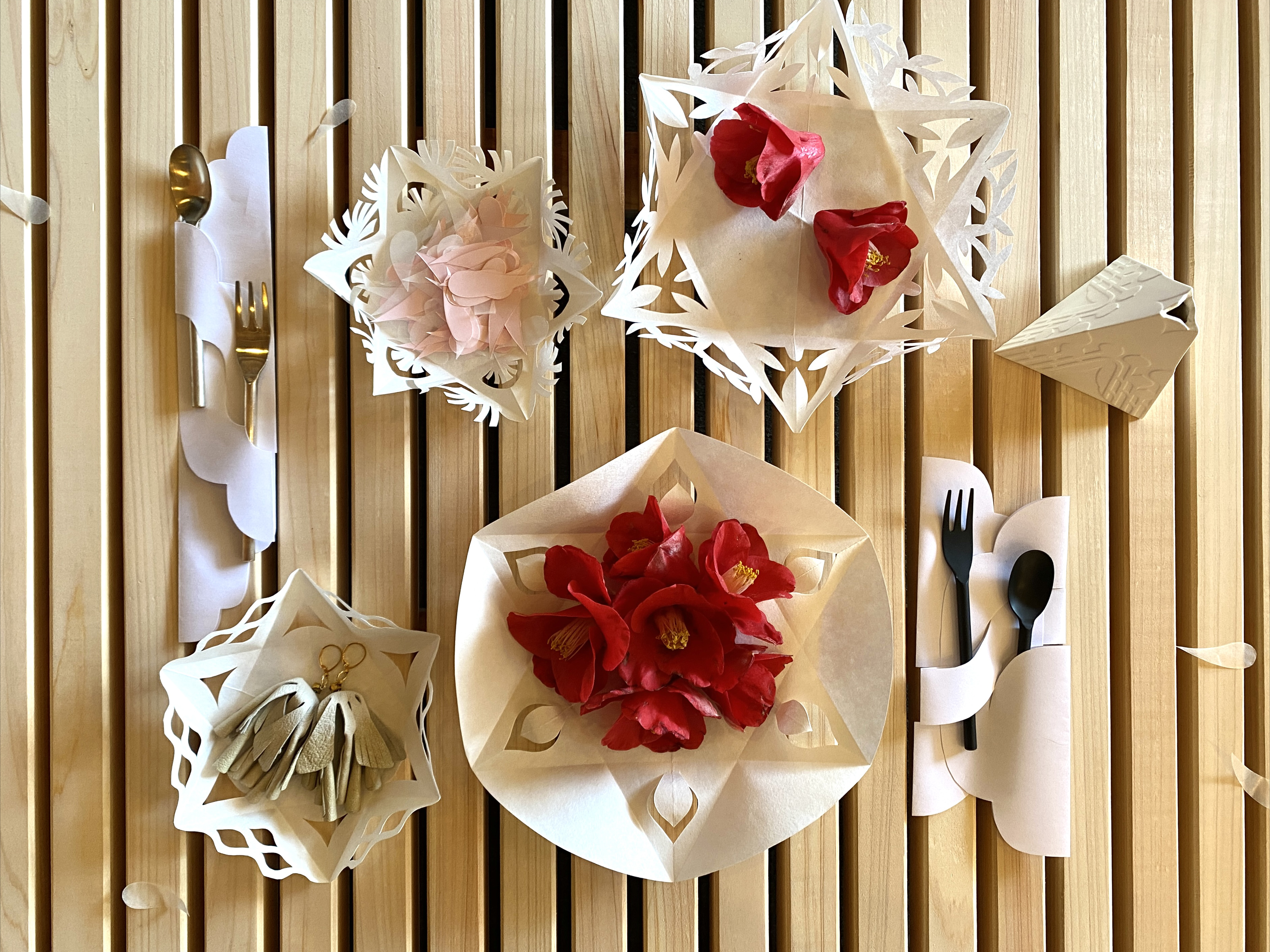 相手の想いや特性を読み解きつつ、その想いを切り紙にのせていくのは私だけではない誰かと共に創り上げるからこそ生まれるカタチです。